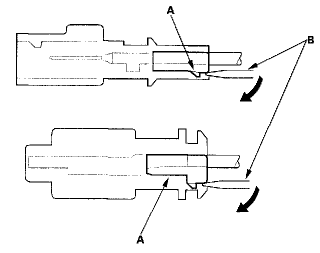 Backprobing Spring-loaded Lock ConnectorsWhen checking voltage or resistance on this type of connector the first time, you must remove the retainer to insert the tester probe from the wire side.
