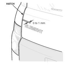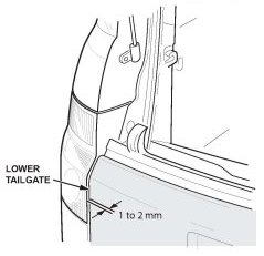 1. With the hatch open, compare the level of the tailgate to the level of the taillights. The tailgate edge should be recessed 1 to 2 mm in relation to the taillight.