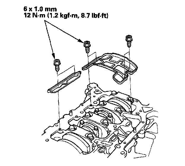 20. Tighten the 8 mm bolts in sequence to 22 Nm (2.2 kgf-m, 16 ft. lbs.).