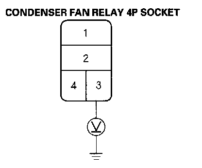 4. Measure the voltage between the No. 3 terminal of the condenser fan relay 4P socket and body ground.