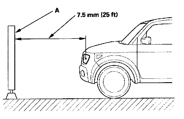 2. Park the vehicle 7.5 m (25 ft) away from a wall or a screen (A).