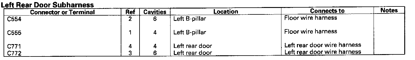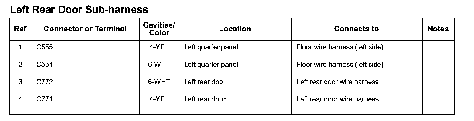 Left Rear Door Sub-harness: