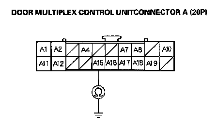 5. Check for continuity between No.15 terminal of door multiplex connector A (20P) and body ground.