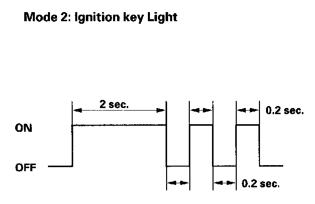 The ignition key light and beeper will not blink/deep again after the mode 1 indication.