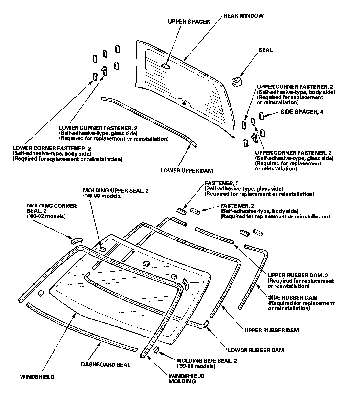 Glass Component Location Index - Windshield-Rear Window: