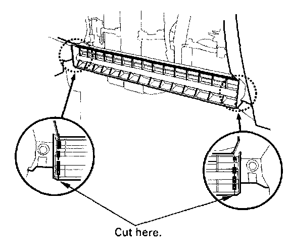 2. Cut the plastic cross brace in the glove box opening with diagonal cutters in the area shown, and discard it.