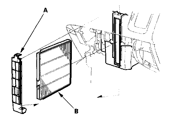 4. Remove the filter lid (A) from the evaporator, then pull out the dust and pollen filter (B).