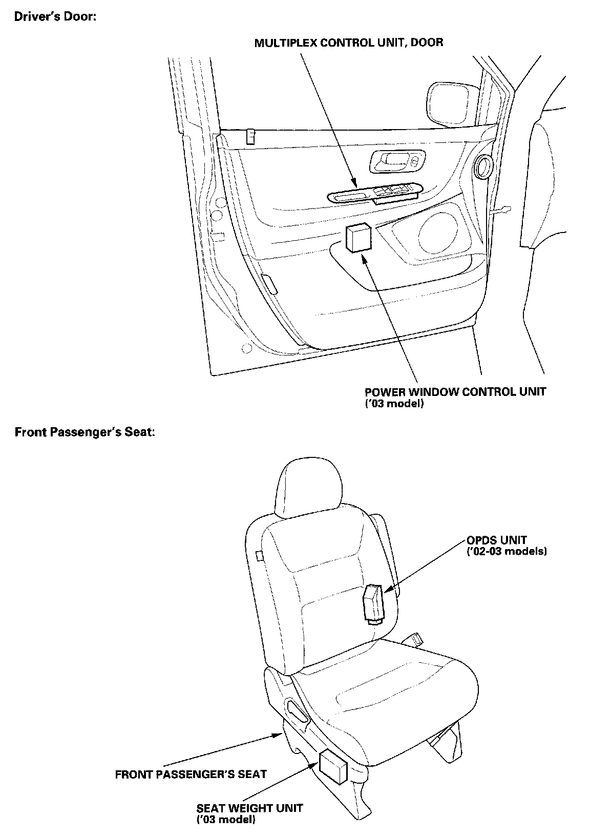 Relay And Control Unit Locations - Door And Seat: