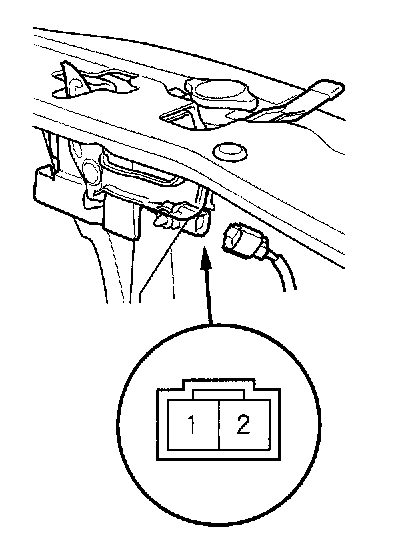- There should be continuity between the No. 1 and No. 2 terminals when the hood is opened (lever released)
