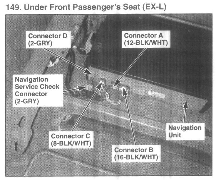 149. Under Front Passenger's Seat (EX-L):