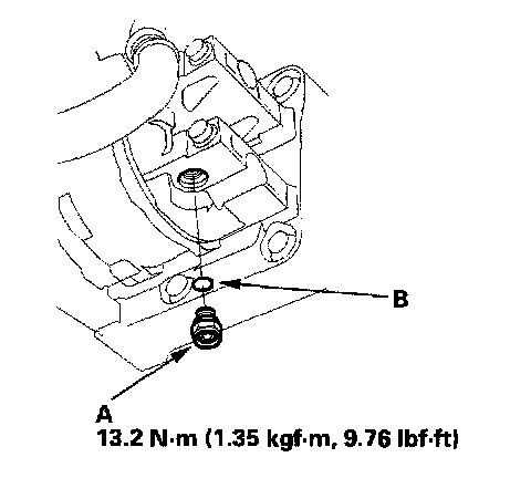 2. Remove the relief valve (A) and the O-ring (B). Plug the opening to keep foreign matter from entering the system and the compressor oil from running out.