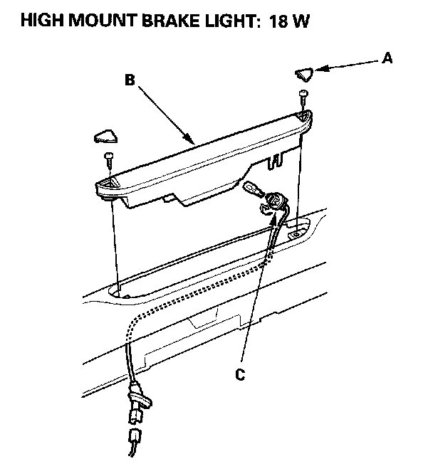 High Mount Brake Light Replacement1. Remove the caps (A) from the high mount brake light (B) with a small screwdriver.
