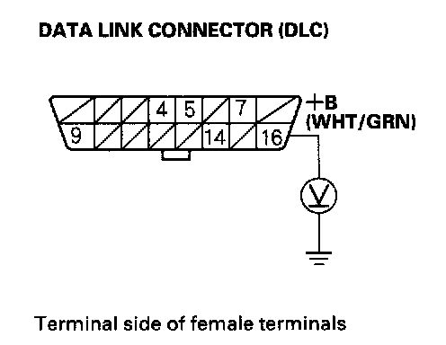 2. Measure voltage between data link connector (DLC) terminal No.16 and body ground.