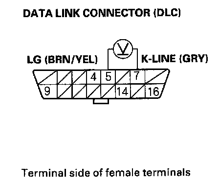 13. Measure voltage between DLC terminals No.5 and No.7.