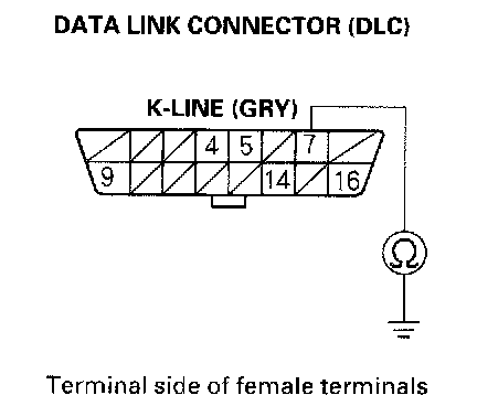 8. Check for continuity between DLC terminal No.7 and body ground.