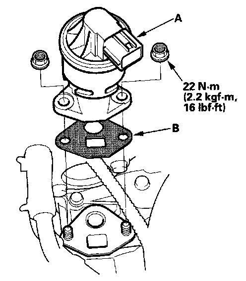4. Install the valve in the reverse order of removal with a new gasket (B).
