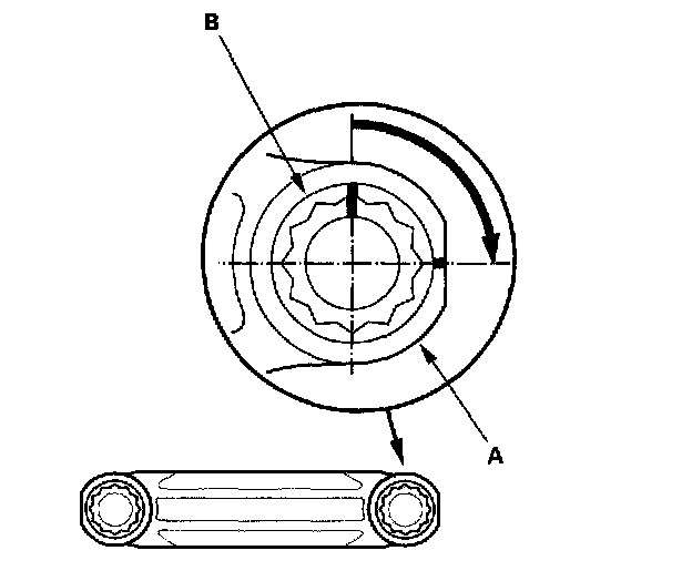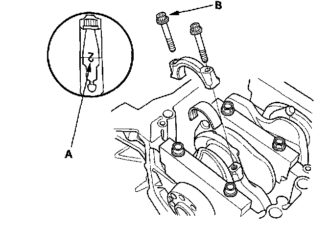 Mark the connecting rod (A) and bolt head (B) as shown.