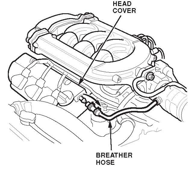 1. Disconnect the breather hose connecting the front head cover to the air inlet tube.