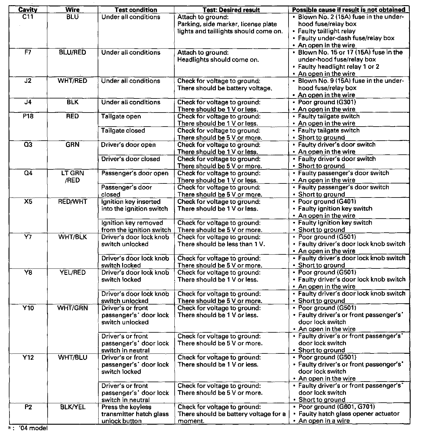 NOTE: For the hatch glass unlock button test, refer to the rear window wiper control unit input test.