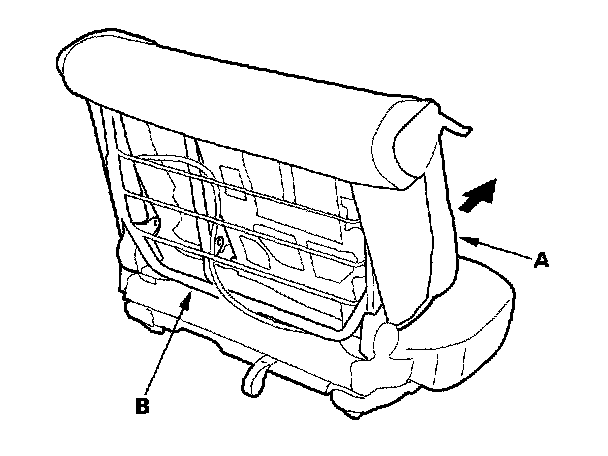 6. Pull the bottom of the seat-back pad (A) away from the seat-back frame (B).