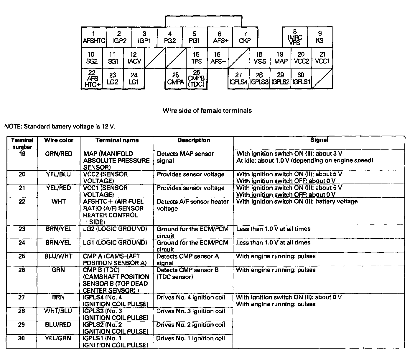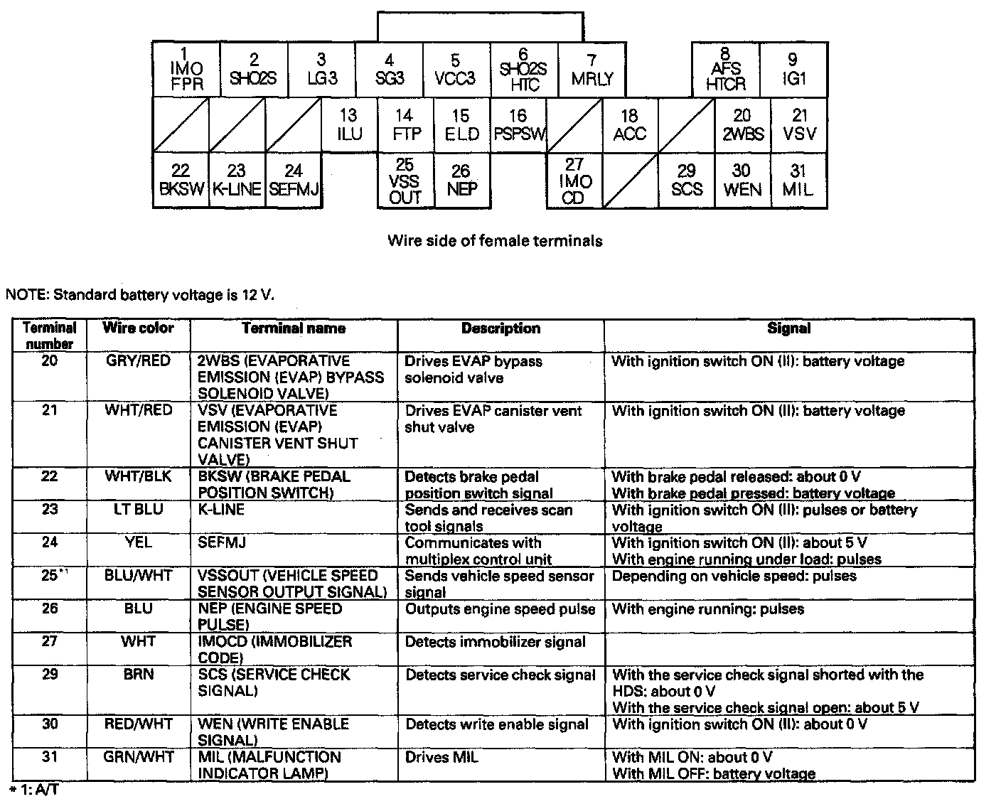 ECM/PCM Inputs And Outputs At Connector A (31P):