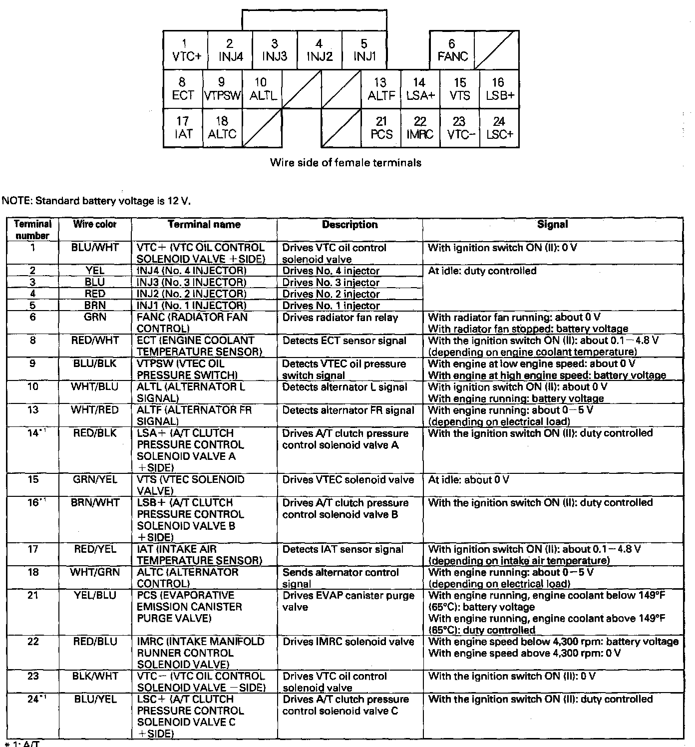 ECM/PCM Inputs And Outputs At Connector B (24P):