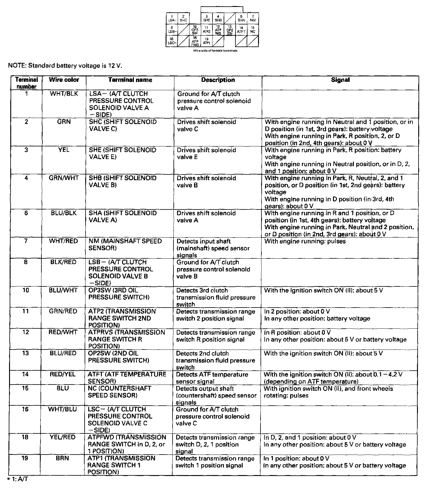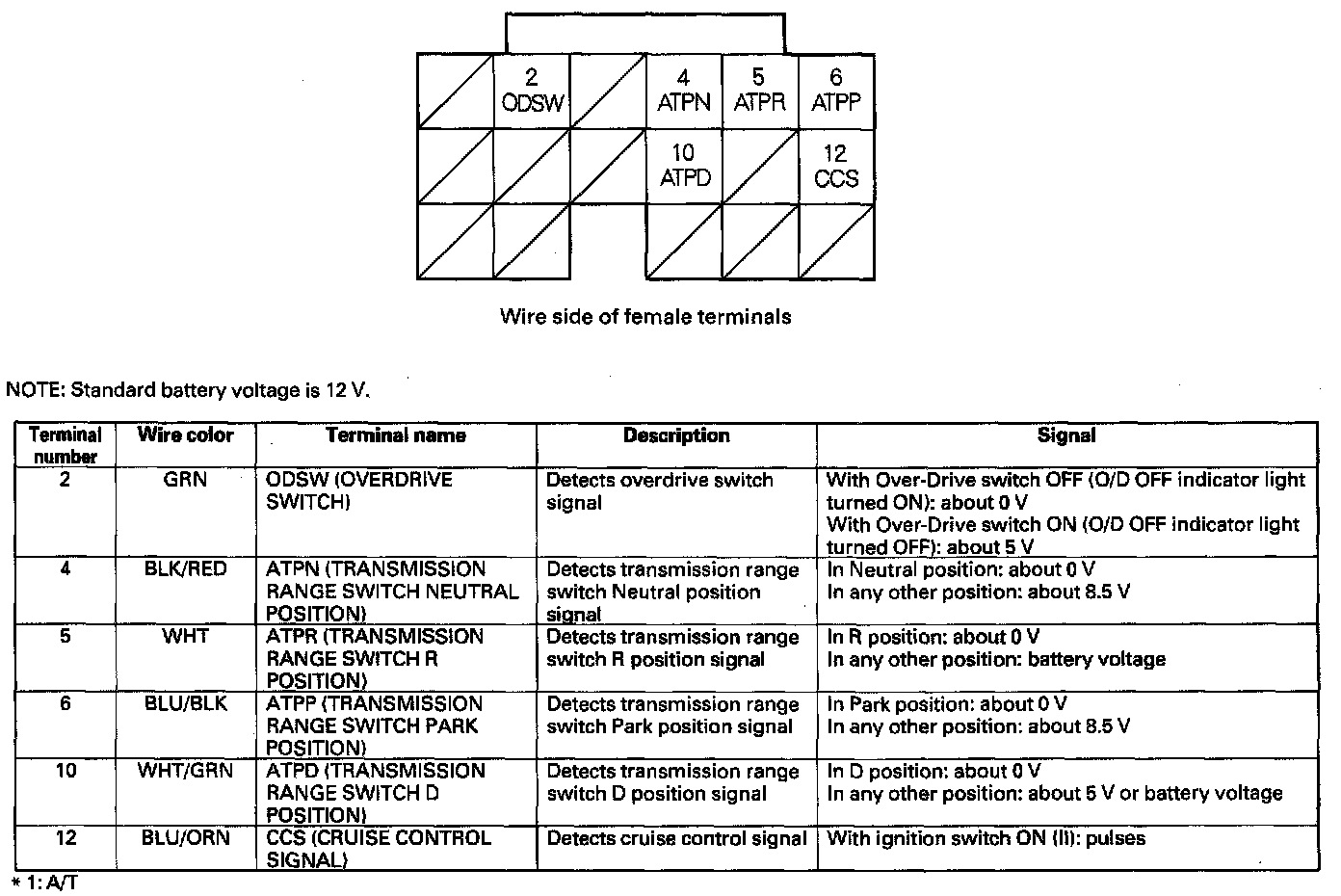 PCM Inputs And Outputs At Connector D (17P)*1: