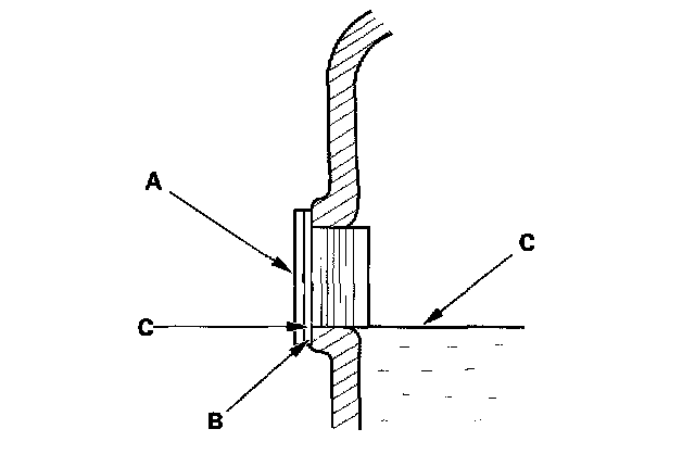 2. Remove the oil filler plug (A) and sealing washer (B), then check the condition of the fluid, and make sure the fluid is at the proper level (C).