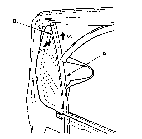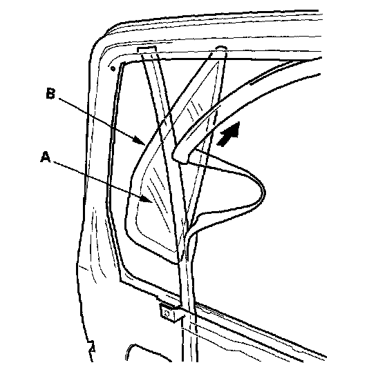 5. Remove the door quarter glass (A) and seal (B) as an assembly from the door.