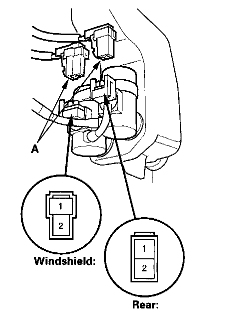 2. Disconnect the 2P connectors (A) from the washer motors.