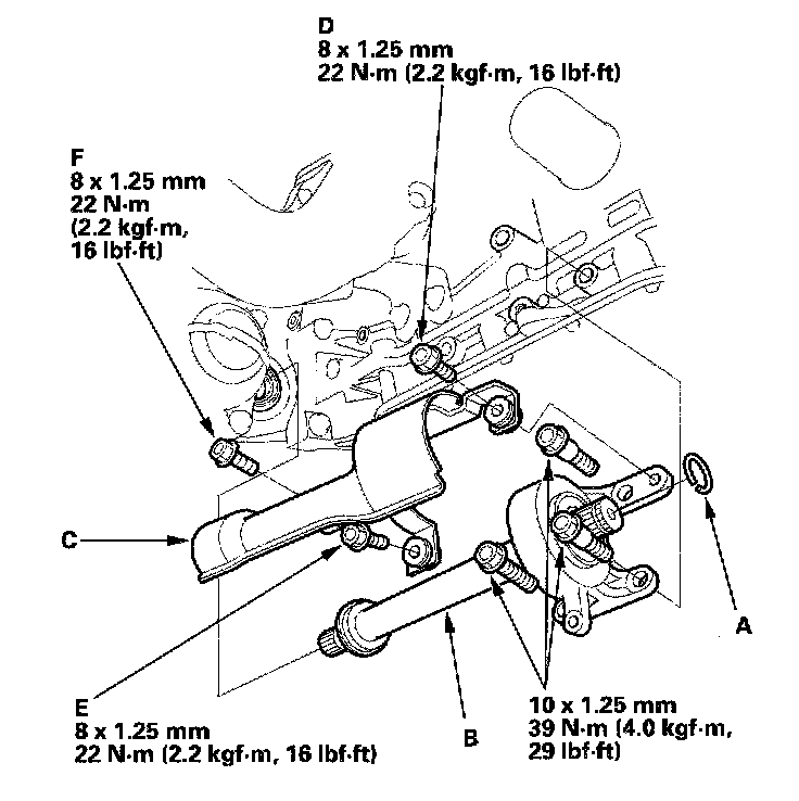 5. Install the 14 x 20 mm dowel pins (D) in the torque converter housing.