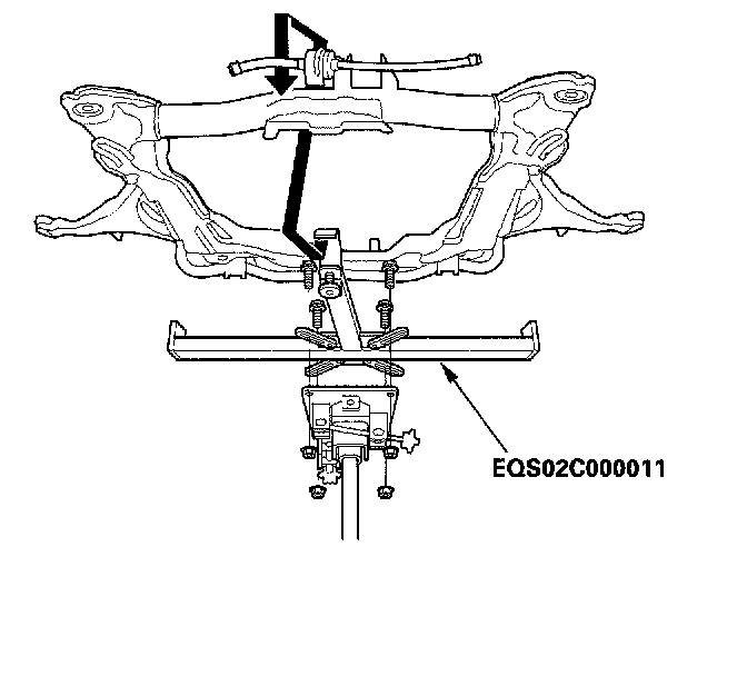 19. Support the sub-frame (A) with the special tool and a jack, and lift it up to body.