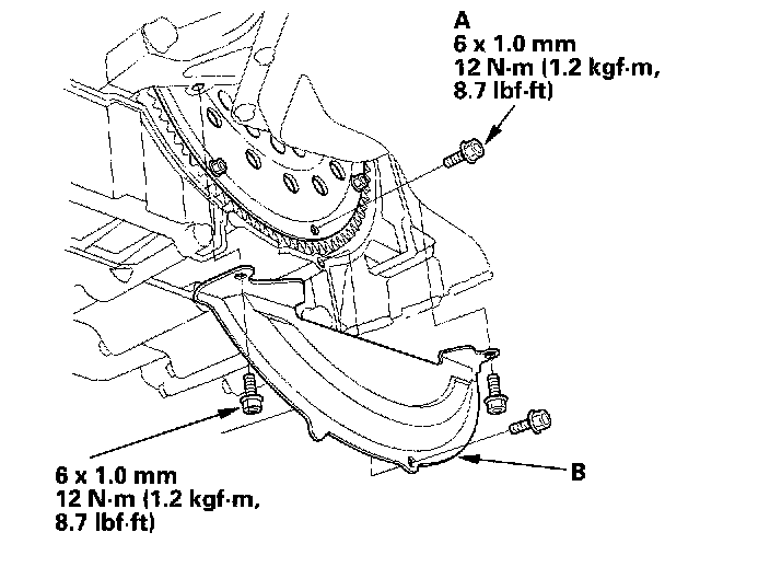 27. Install the torque converter cover (B).