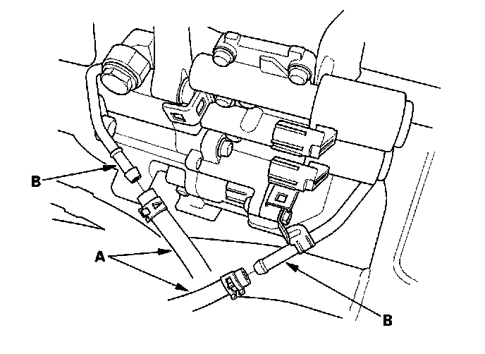 31. Connect the ATF cooler hoses (A) to the ATF cooler lines (B).