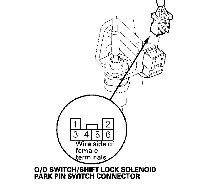 2. Disconnect the O/D switch/shift lock solenoid/park pin switch connector.