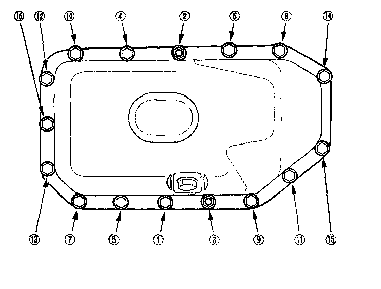 1. Remove old liquid gasket from the oil pan mating surfaces, bolts, and bolt holes.