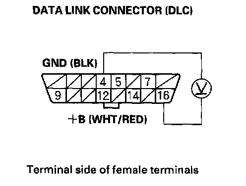 2. Measure voltage between DLC terminals No.4 and No.16.