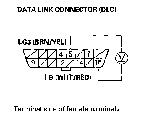 15. Measure voltage between DLC terminals No.5 and No.7.