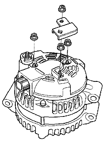 4. Remove the harness stay and the three flange nuts from the alternator.