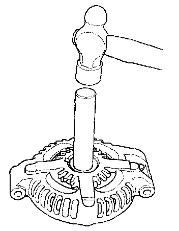 12. With a hammer and special tools, install a new front bearing in the drive end housing.