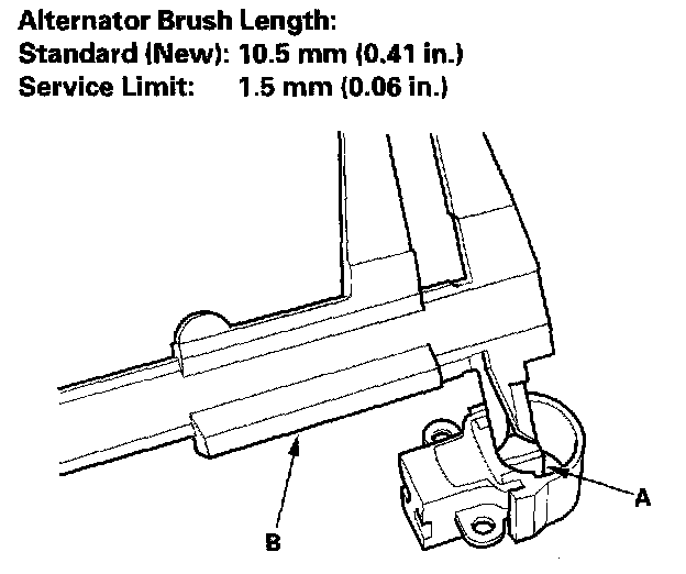- If either brush is shorter than the service limit, replace the brush holder assembly.