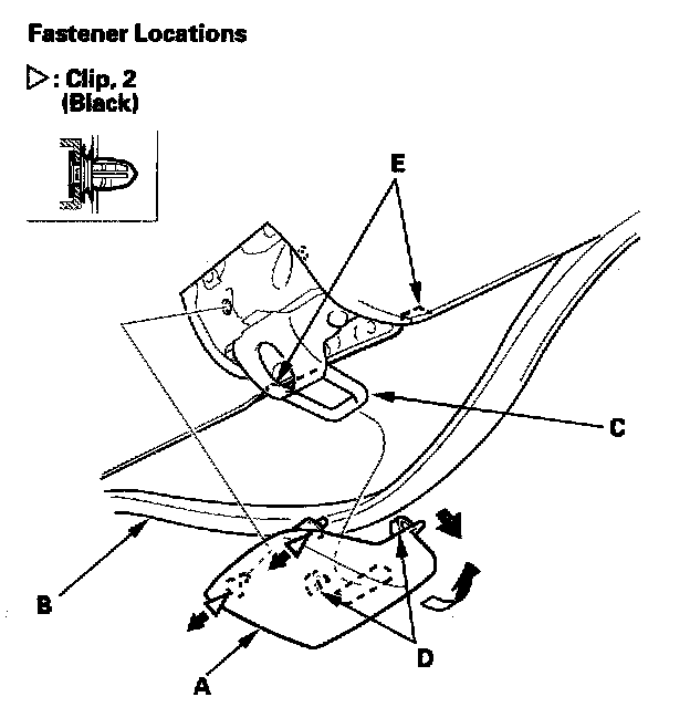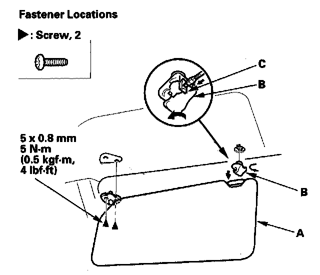 3. Remove the sunvisor (A) and holder (B) from both sides.