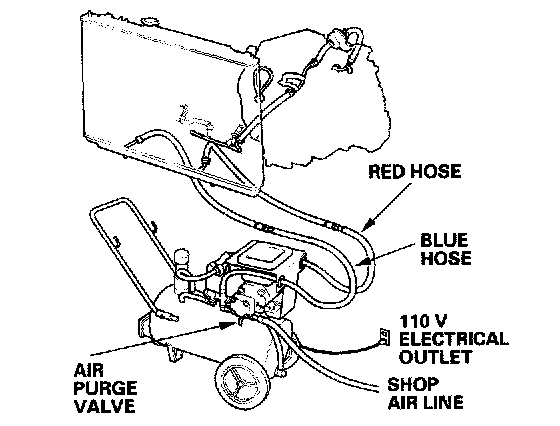 7. Connect a shop air hose (regulated to 100 to 125 psi) to the air purge valve.