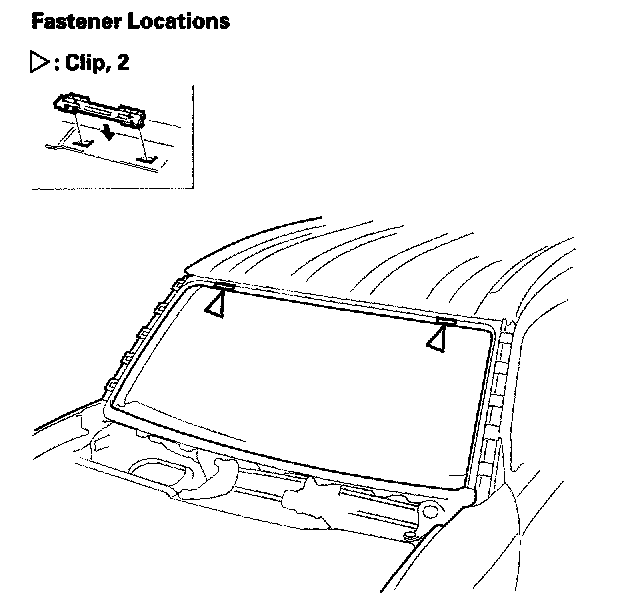 4. Pull down the front portion of the headliner. Take care not to bend the headliner excessively, or you may crease or break it.