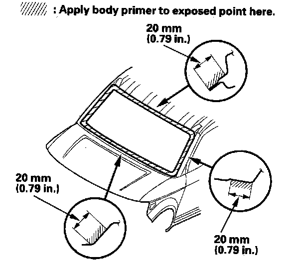 - Never touch the primed surfaces with your hands. If you do, the adhesive may not bond to the windshield properly, causing a leak after the windshield is installed.