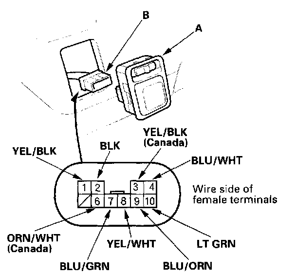 - If the mirror does not tilt down (or does not swing left), check for an open in the BLU/WHT (or BLU/ORN) wire between the left mirror and the 10P connector. If the wire is OK, check the left mirror actuator.