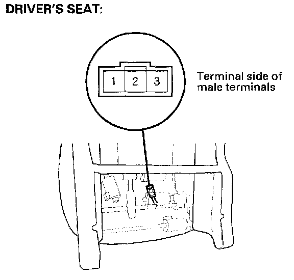 2. Driver's seat: Check for continuity between the No.1 and No.2 terminals, and No.2 and No.3 terminals of the driver's seat heater heater connector (3P).