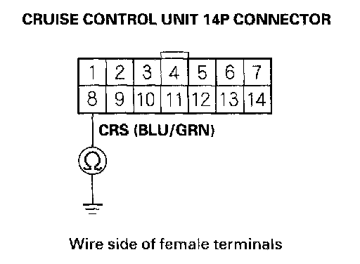 NO - Repair open in the wire between the PCM connector terminal A5 ('99-00, '02-03 models) or E17 ('01 model) and the cruise control unit 14P connector terminal No.8.