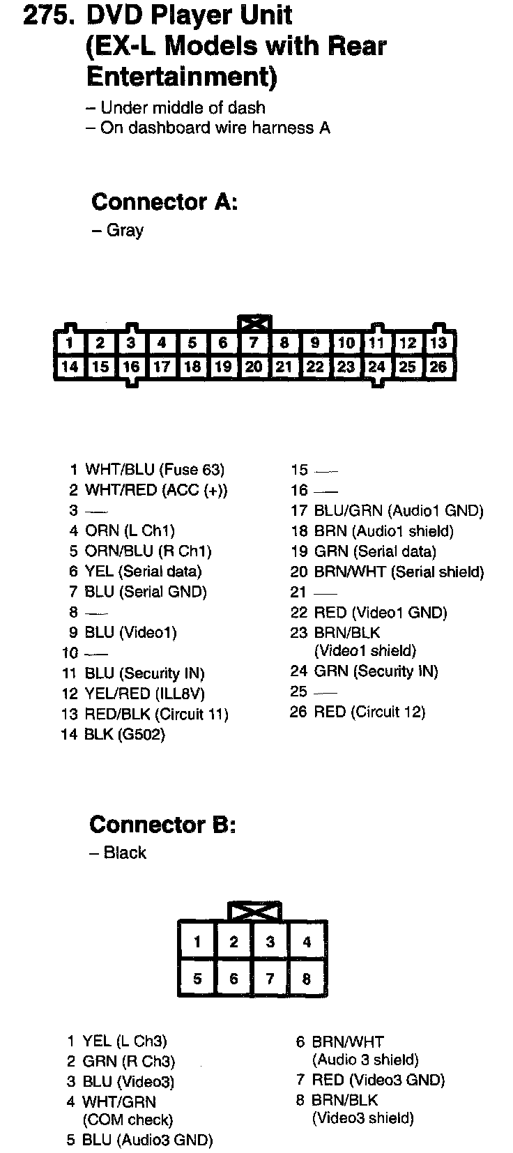 275. DVD Player Unit (EX-L Models With Rear Entertianment) Connector A, B: