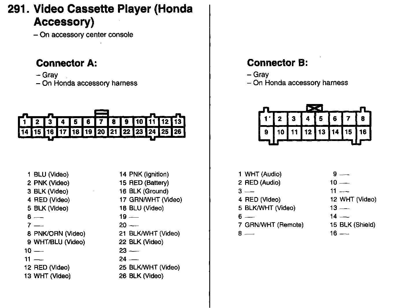 291. Video Cassette Player (Honda Accessory) Connector A, B: